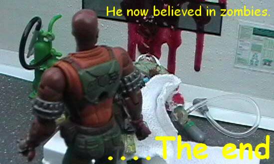 In my efforts to make interesting, off-the-beaten-path, Diorama-Stories, I turned to one of my favorite genres- the living dead! So, what I did with this one was essentially toss some G.I.Joe team members into the familiar boundaries already set up by George Romero and Len Barnhart (Slow plotting zombies that can only be destroyed by brain trauma. I even threw in fast zombies from the 2004 remake of Dawn of the Dead.